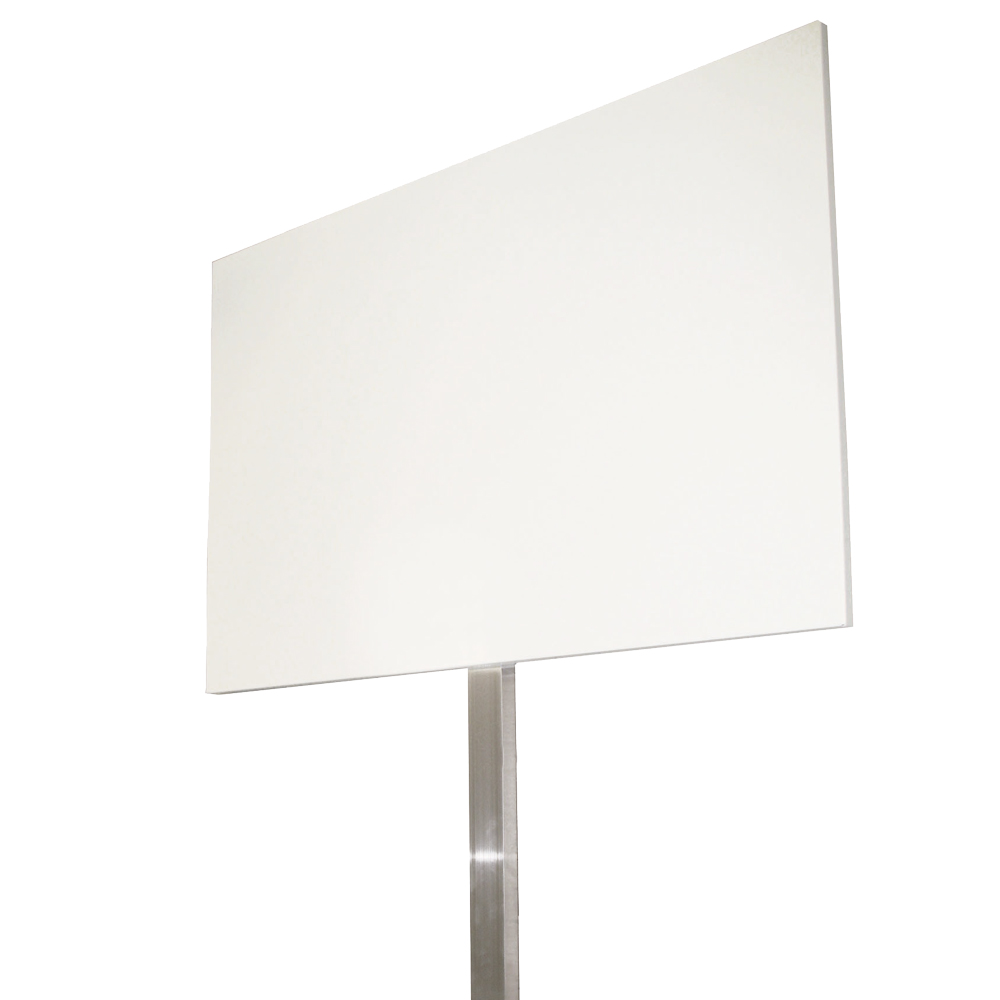 Les kits pré-enseigne Matel Service comprennent un panneau aluminium laqué blanc de dimension standard 1500 x 1010 mm et d’un mât de 3 ou 4 m.