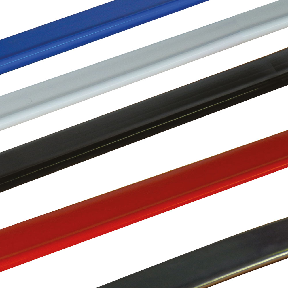 Sa rainure de 2,5 mm permet de maintenir des faces PMMA de 3 mm d’épaisseur et de faire la jonction avec le profilé de chant à la fois souple et solide.
