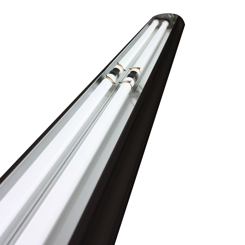 Ce profilé en aluminium, léger et discret, peut accueillir deux rangées de tubes LED T8 et est doté d’une finition laquée blanc RAL 9010, avec une longueur de 6,15 m.