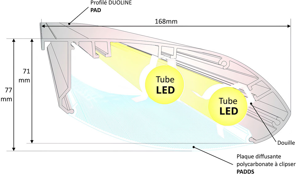 PAD Profilé aluminium pour éclairage linéaire Duoline